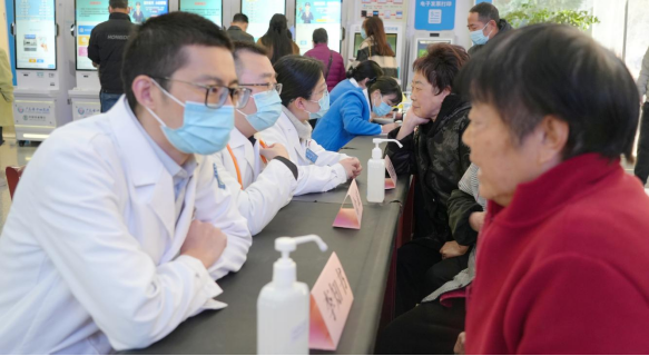 上午,在广元市中心医院门诊大厅1楼的义诊现场,呼吸与危重症医学科的专家团队为前来咨询的市民提供免费血压检测、病情诊断、用药指导等服务。