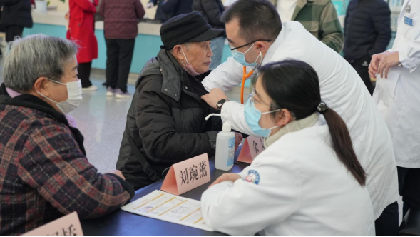 团队不仅为老人们测量血压、血糖,同时在现场发放慢阻肺病防治科普手册,用通俗易懂的语言讲解疾病危害与防控知识,帮助老年人提升自我健康管理意识。