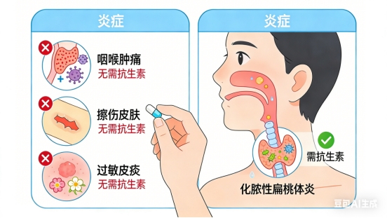 很多人把抗生素等同于“消炎药”,只要身体有炎症就用,这其实是混淆了“炎症”和“感染”的概念。