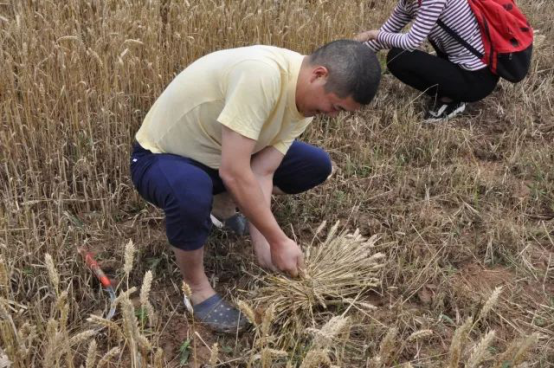 在贫困户张金元家金黄的麦地里,七、八位帮扶干部一字排队,尽管大家在烈日下大汗淋漓,却还是一鼓作气把一亩多小麦全部收割完毕才歇息。张金元的儿子患有智障无法从事劳动,其妻子也常年在外打工,每遇抢收抢种的农忙季节便忙不过来。这下可好了,有了帮扶干部们的帮助,他担心焦虑的事情一下子就解决了。