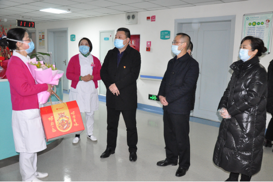 同时,受院党委书记、院长马兵委托,医院常务副院长王贡顺、党委副书记刘军、工会主席魏绍敏代表医院亲切慰问了第二批援鄂医疗队员家属,为他们送上鲜花和慰问金,感谢他们在特殊时期对援鄂工作的理解和支持,并详细询问了家属们在工作、生活方面存在的困难,表示医院将提供最大的支持和保障,帮助他们解决后顾之忧,并叮嘱他们要保重好自己的身体。