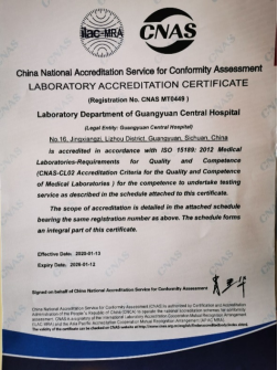 本次认可证书的获得,意味着广元市中心医院检验科已达到国际标准化组织ISO 15189《医学实验室质量和能力的专用要求》所要求的质量和能力的标准。检验科获CNAS认可的项目,所出具的实验室报告和科研数据将在全球规定的范围内得到互认,具备了按相应认可准则开展检测服务的技术能力,可获得签署互认协议的国家和地区的承认,有机会参与国际间合格评定机构的双边、多边合作交流,可在认可的范围内使用CNAS国家实验室认可的标志及ILAC(国际实验室认可组织)互认的联合标志。
