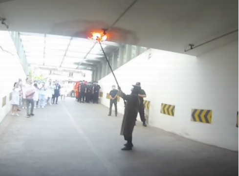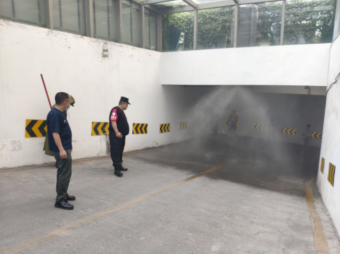 演练开始,保卫科副科长王健集结安保队伍,陪同胥院长前往消防微型站对消防自消系统的运行进行查看,并专门测试了喷淋和烟感报警与主机联动情况。院安全生产办公室副主任屈腾带领观摩人员在地下室口(喷淋点)观看安保人员准备好的火源测试喷淋在火温达到65。C以上,喷淋自动开启灭火功能。通过与微型消控室信息反馈,喷淋与主机联动一切正常。