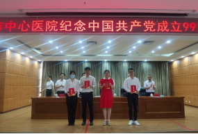 为庆祝中国共产党成立99周年,进一步弘扬正气、树立标杆,激励全院各党总支、党支部和广大党员干部坚定信念、对党忠诚、履职尽责、奋发有为,为医院持续健康发展做出更大贡献,6月28日下午,我院在学术厅召开纪念中国共产党成立99周年大会。院班子成员、各党支部书记及党员代表参加了会议。