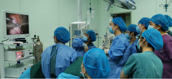 图3:妇科张玲主任亲自示范教学手术,行腹腔镜下子宫及双附件切除