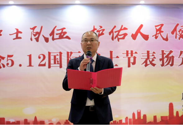 我院院长徐哲代表医院向奋斗在护理工作岗位上的全体白衣天使们致以节日的问候和崇高的敬意,向受表彰的优秀护士表示热烈的祝贺。徐哲院长充分肯定了我院护理工作者在学科建设、人才培养、专业技术、人文关怀、保障患者安全和提升护理质量等方面取得的显著成绩。
