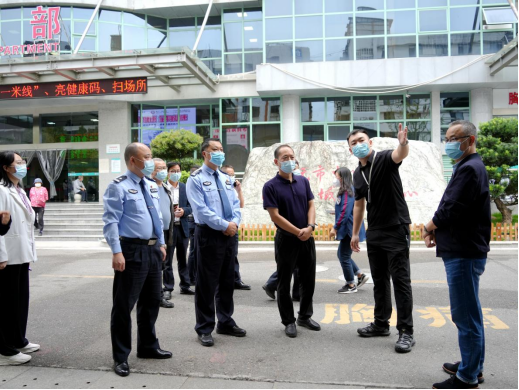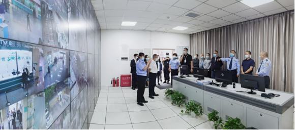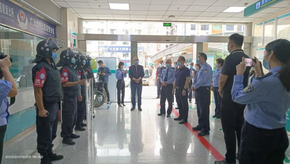 参观组一行先后实地参观了我院的智慧门防系统、警务室、监控中心以及安保队伍建设,听取了我院平安医院建设工作的讲解。