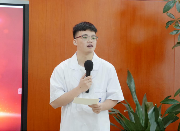 来自胸外科的新生代表张宇航进行了现场发言,它表示很高兴和大家在广元市中心医院相遇,共同开启逐梦之旅,我在这里度过了全程教学和实习时光,我的研究生生活也将继续在这里度过,这里承载了我太多回忆,这里有和蔼可亲的老师,团结友爱的同学,成为规培生,大家即是学生也是医生,要做好笔记学习好,还要勤于思考操作好。