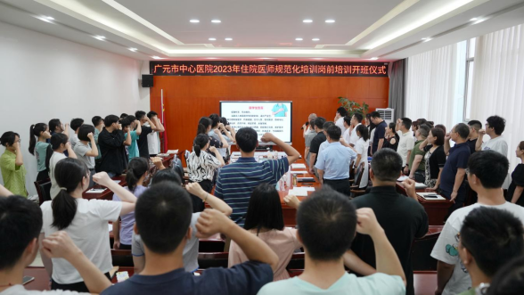 杏林春满又添绿,迎风生长正当时。7月31日上午,我院组织召开2023级住院医师规范化培训学员岗前培训开班仪式,热烈欢迎新加入我院的65位住培学员,对他们提出殷切希望与美好祝福,院领导班子及相关职能科室负责人参加开班仪式,会议由科教科科长王树泉主持。