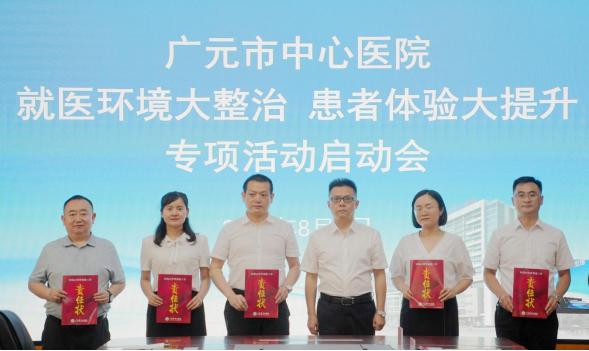 为提升医院精细化管理水平,推动医院高质量发展,着力建设有温度的优质医疗服务品牌医院。8月4日下午,广元市中心医院组织召开“就医环境大整治 患者体验大提升”专项活动启动会,安排部署我院启动6S 管理工作。院领导班子、职能科室负责人、大科主任、护士长,本次参与6S 管理打造科室的正职科主任、护长参加会议。