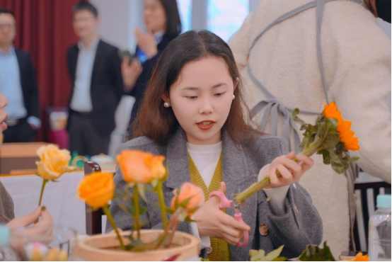 插画活动环节,邀请专业插花师介绍花语含意、花束色调搭配、插花技巧及鲜花保鲜方法等,女职工体验插花,大家根据自己的喜好和灵感,设计出自己花束,作为自己给自己的一份芬芳礼物。大家谈论嬉笑,拍照欣赏,其乐融融。在大家设计的花束中,最终插花师根据花束形状、色彩搭配评选出优秀作品。