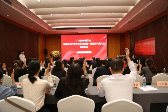 会议选举产生了广元市中心医院肾病内科护士长牛小梅为广元市护理学会血液净化专业委员会首届主任委员,广元市中心医院血液净化中心副护士长权礼军、广元市第一人民医院血透室负责人邓蓉、广元市中医医院肾病内科护士长曾询、广元市精神卫生中心肾病内科护士长王雪梅为副主任委员,白芙蓉、白欣灵、陈文英、丁小菊、邓宇莎等24位人员为委员。