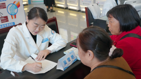 “骨质疏松症是一种以骨量低下、骨组织微结构损坏,导致骨脆性增加,易发生骨折为特征的全身性骨病……”活动现场,我院内分泌科的医护人员一边为群众提供骨密度筛查、报告单分析、专家面对面咨询,一边宣讲骨质疏松症预防策略,并为骨折后患者进行康复指导。