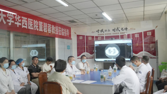 在指导工作期间,董碧蓉教授认真听取主管医生对患者的诊疗思路和治疗计划,根据患者的临床病例特点、辅助检查结果,综合分析病情,提出了许多宝贵的诊疗建议。董教授还耐心细致地解答了患者及家属提出的问题,消除了他们的顾虑,给予了患者对抗病魔的信心。