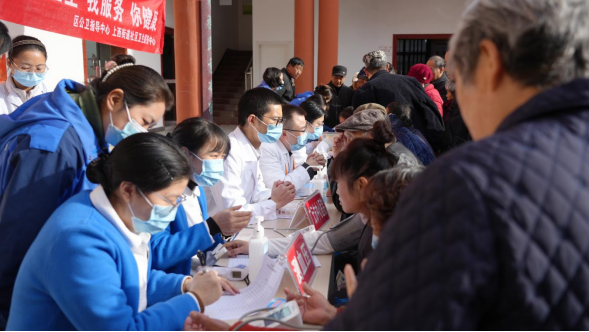 团队不仅为老人们测量血压、血糖,同时在现场发放慢阻肺病防治科普手册,用通俗易懂的语言讲解疾病危害与防控知识,帮助老年人提升自我健康管理意识。