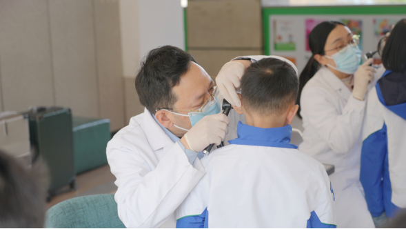 科普结束后,专家们为同学们进行了免费的耳部常规检查,细致查看耳道、鼓膜情况,同时也向老师叮嘱日常校园中需要注意的儿童听力防护要点,比如课间避免大声喧哗、做好校园噪音防护等,还提醒孩子们可以和爸爸妈妈一起翻看科学爱耳手册,共同学习护耳知识。