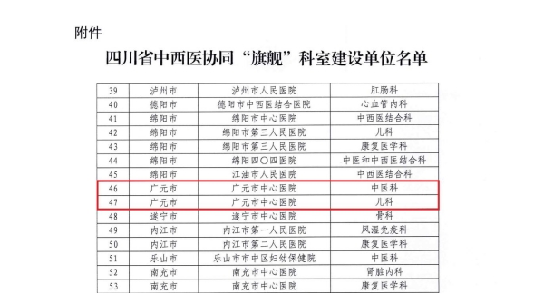 全市唯一!广元市中心医院儿科、中医科入选省级“旗舰”科室