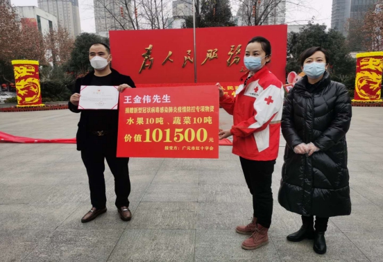 2月12日 王金伟先生通过广元市红十字会向医院捐赠蔬菜、水果3.34吨