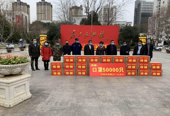 2月17日 中国农业银行广元分行向医院捐赠医用一次性口罩10000个