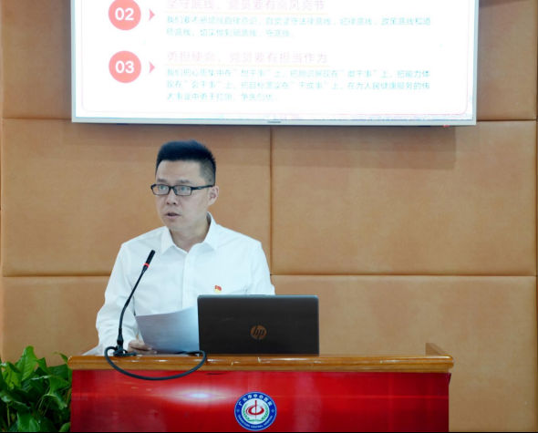 会上,院党委书记石平作了《重温入党誓词,坚守初心使命,勇挑时代重任》的专题党课,回顾党的光辉历程,发扬伟大建党精神。石平书记带领大家一起回顾了入党誓词的历史起源和发展历程,并对照入党誓词从入党动机、理想信念、岗位工作、遵规守纪四个方面叩问党员初心使命,同时也对党员干部勇挑时代重任提出了殷切希望,希望大家认真学习、深刻领会、全面落实。