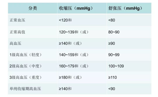 注:当收缩压和舒张压分级属于不同级别时,以较高的分级为准。