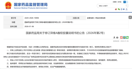 近日,国家药品监督管理局发布2026年第2号公告,对异维A酸软胶囊说明书进行统一修订。这一举措意味着这款被无数患者誉为“战痘神药”的药物,其潜在风险正受到更严格的监管审视。